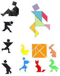 El Tangram es un juego chino muy antiguo llamado Chi Chiao Pan, que significa tabla de la sabiduría. El puzzle consta de siete piezas o "tans" que salen de cortar un cuadrado en cinco triangulos de diferentes formas, un cuadrado y un paralelogramo. El juego consiste en usar todas las piezas para construir diferentes formas. Aunque originalmente estaban catalogadas tan solo algunos cientos de formas, hoy día existen más de 10.000.